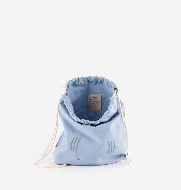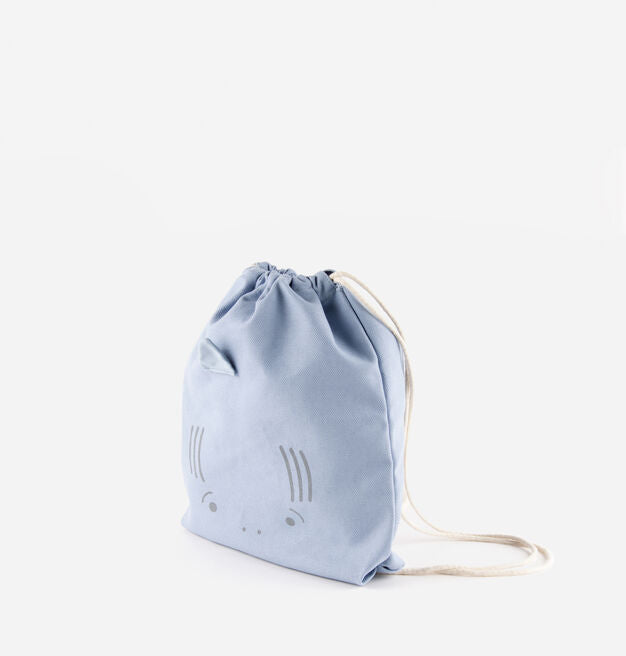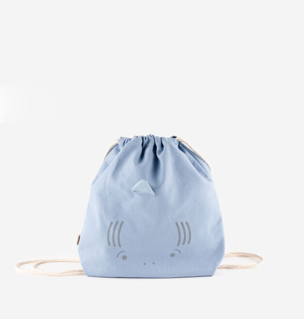 Animal shape mini backpack in 100% eco cotton made in Spain. Perfect for your little one's lunch, it fastens with cotton cord straps and is super lightweight and easy to wash.