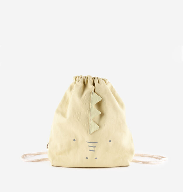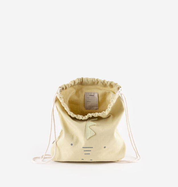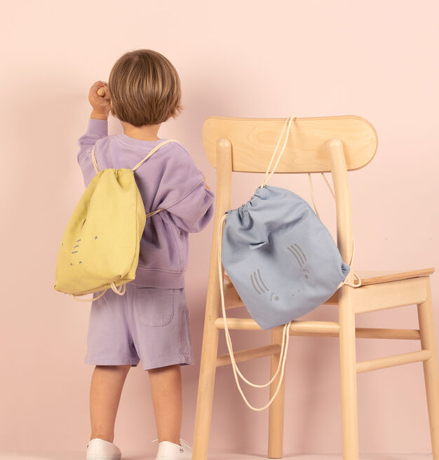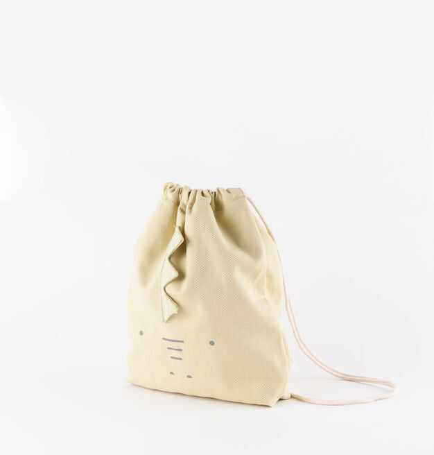 Animal shape mini backpack in 100% eco cotton made in Spain. Perfect for your little one's lunch, it fastens with cotton cord straps and is super lightweight and easy to wash.